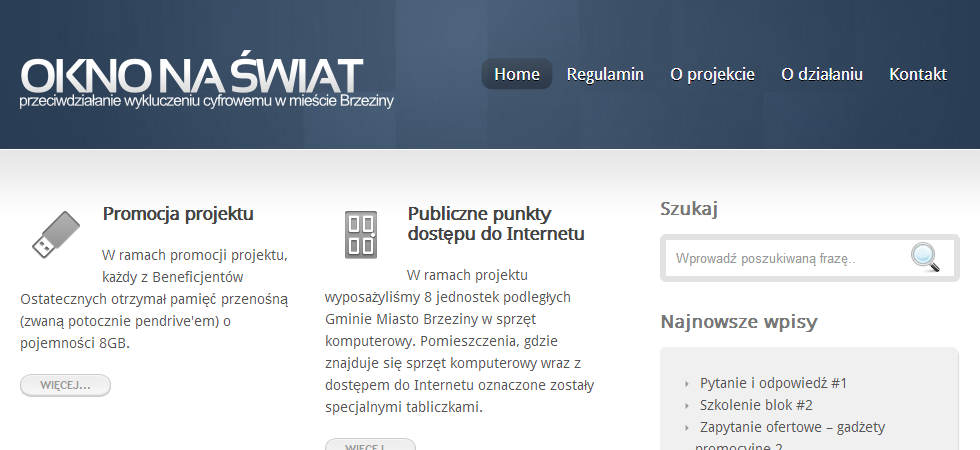 Jestem odpowiedzialny za poprawność pracy sprzętu komputerowego, przygotowanie materiałów szkoleniowych i przeszkolenie Beneficjentów projektu "Okno na Świat".